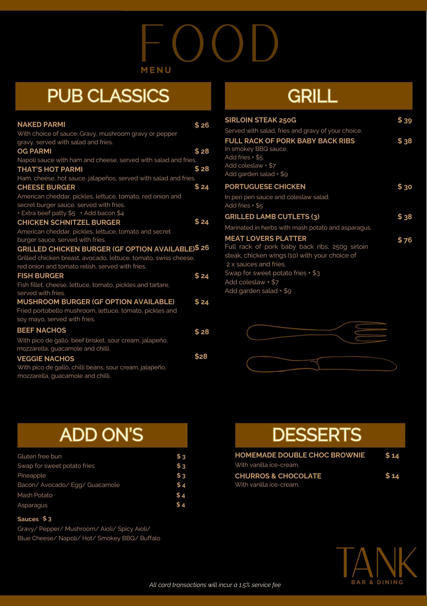 Our chef and bar manager (the boys from Brazil!) work in concert with each other creating a selection of food and drinks guaranteed to please. Whether you are chasing a laid-back lunch, or late-night cocktails there are plenty of options at Tank.